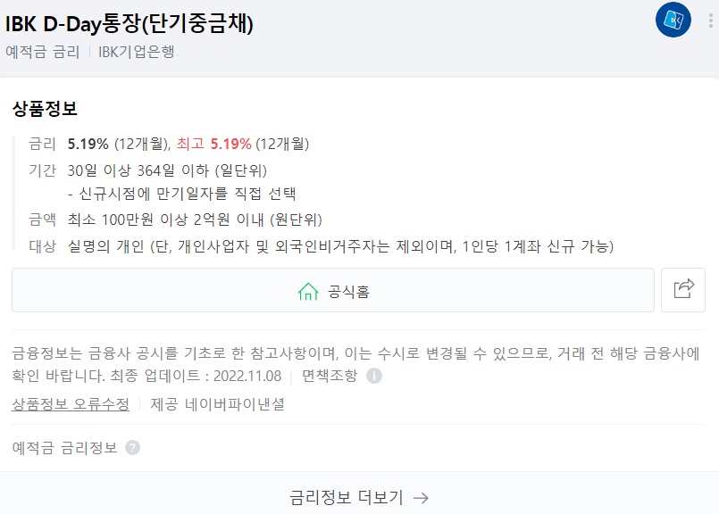 금리 : 5.19%(12개월), 최고 5.19%(12개월)