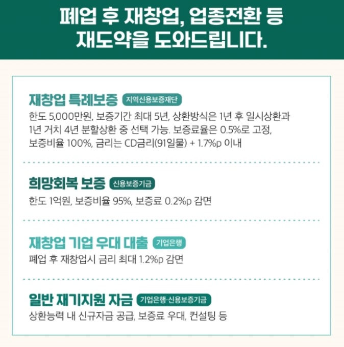 일반 재기지원 자금(기업은행, 신용보증기금 신청)