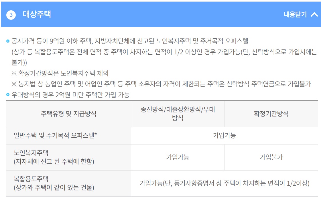 - 보증대상목적물이 노인복지주택인 경우 노인복지법에서 정하는 입소자일 것