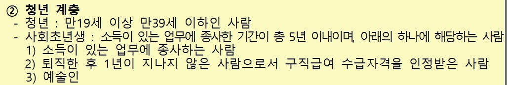 2. 소득이 있는 업무에 종사중인 자로 종사한 기간이 총 5년 이내인 자