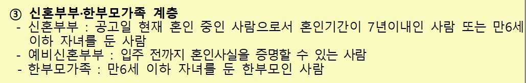 3. 혼인기간이 7년 이내 또는 만 6세 이하 자녀를 둔자