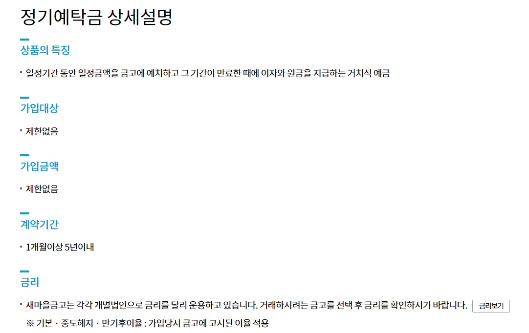 새마을금고 예금금리 높은 상품 - 정기예탁금