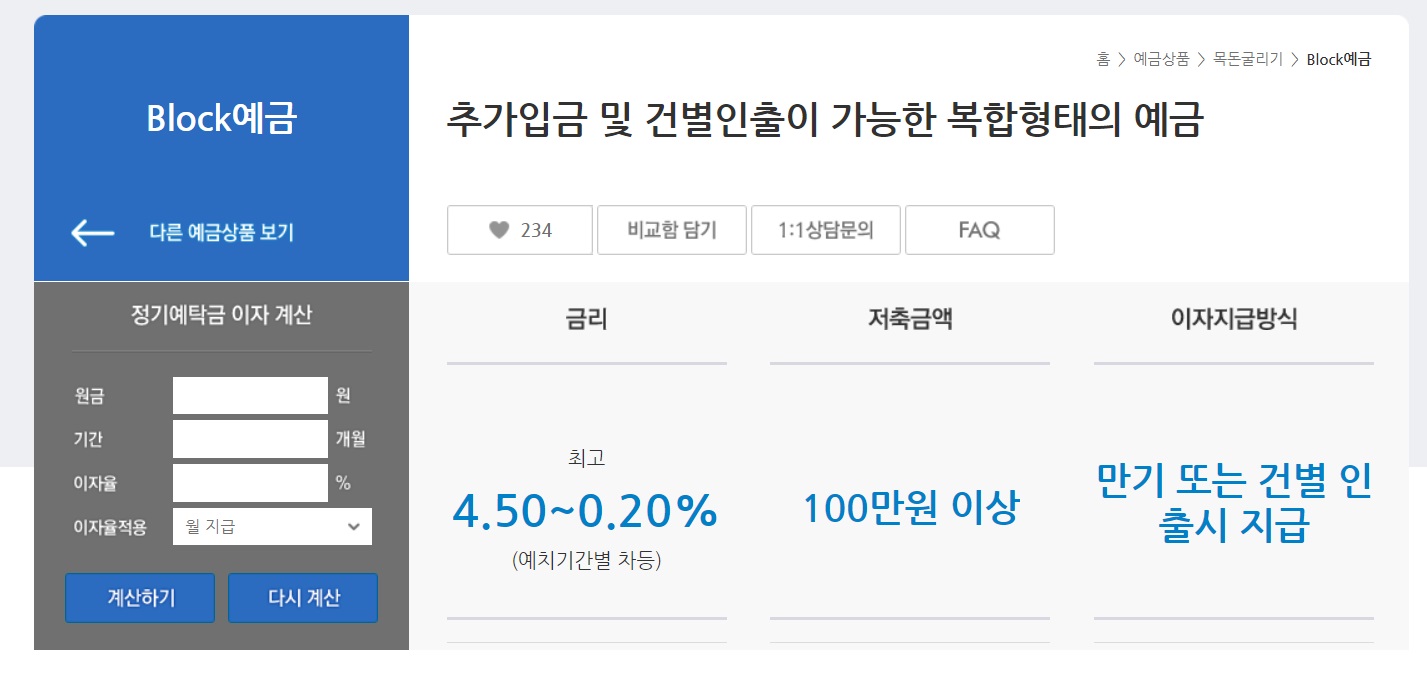 새마을금고의 Block예금 상품은 추가입금 및 건별인출이 가능한 복합형태의 예금입니다.
