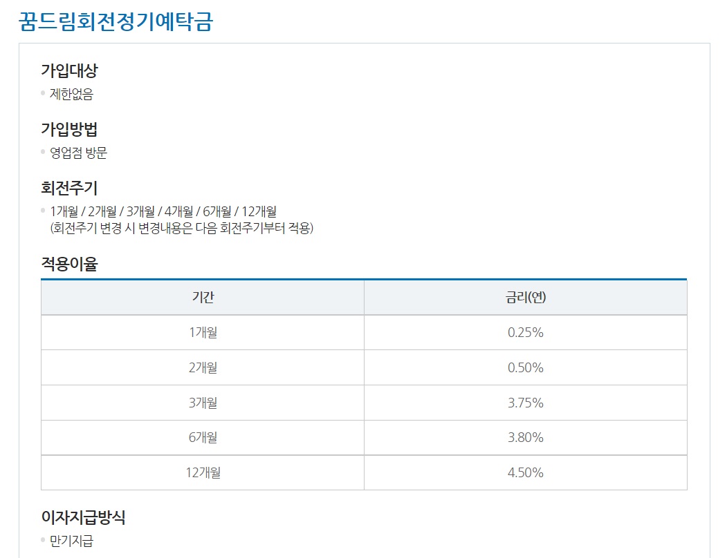 새마을금고 예금금리 높은 상품 - 꿈드림회전정기예탁금