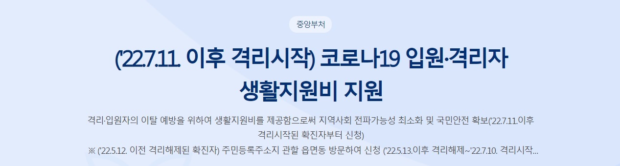 - 적용시기 : 2022년 7월 11일 이후 격리통지자