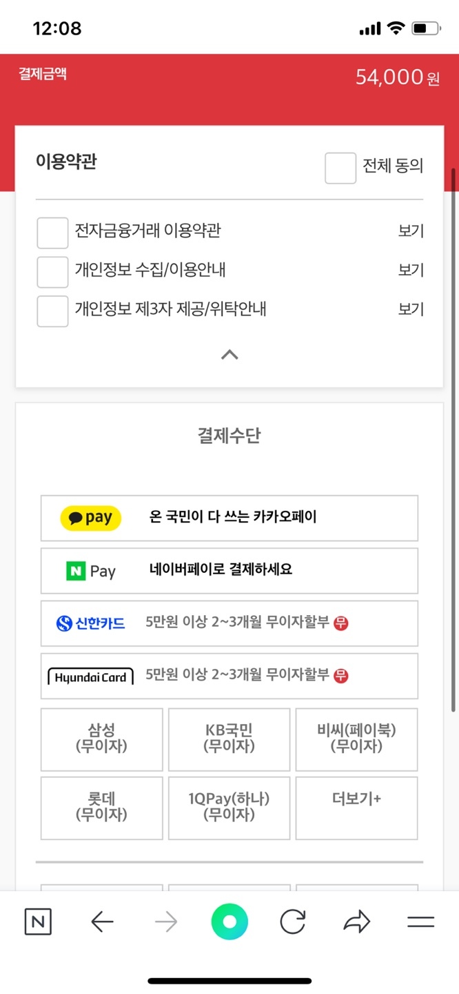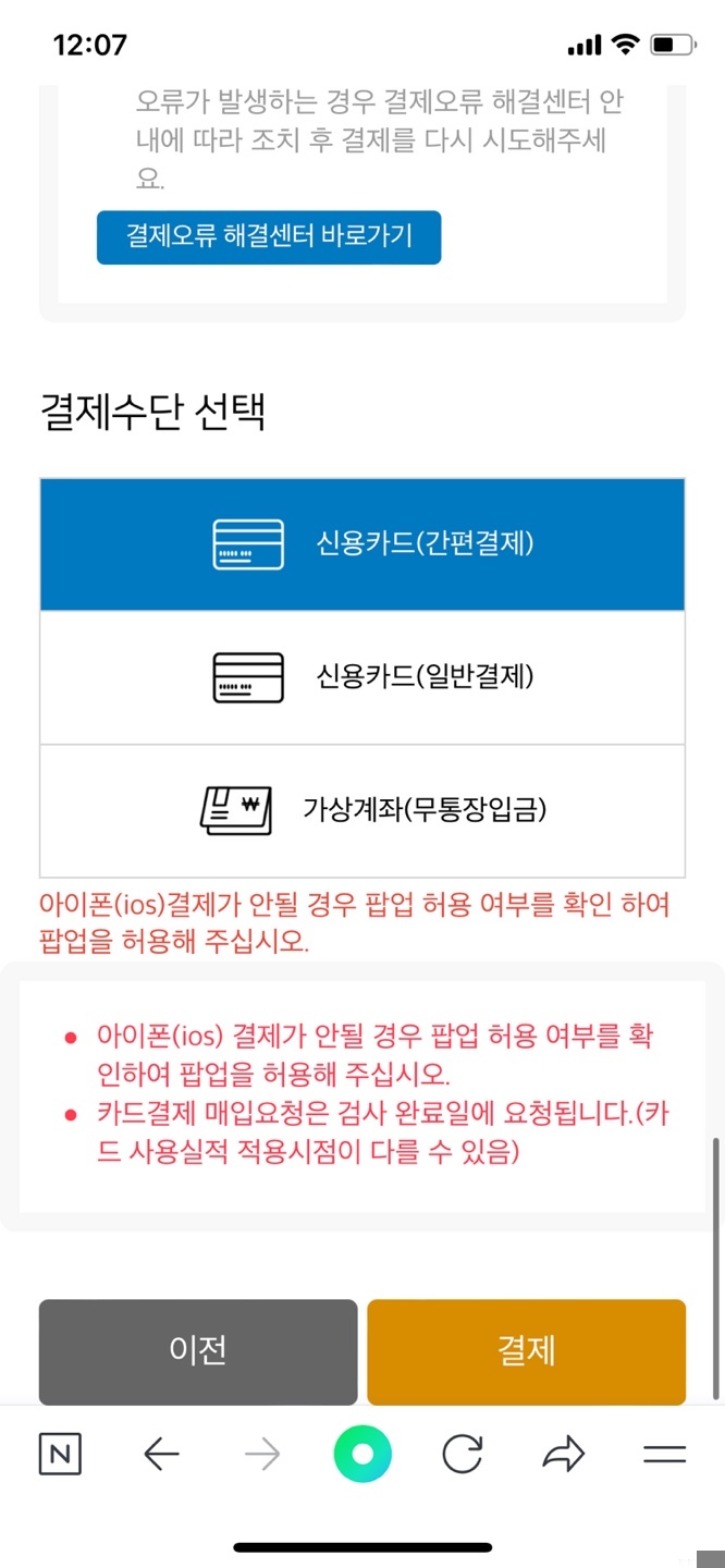 이제 바로 결제만 완료하면 자동차검사 예약 진행이 끝납니다. 혹시나 핸드폰으로 신용카드 결제가 안 되서 걱정이신 분들이 있다면 괜찮습니다. 신용카드 뿐만 아니라 네이버페이, 카카오페이, 페이코 등 다양한 결제수단이 있습니다.