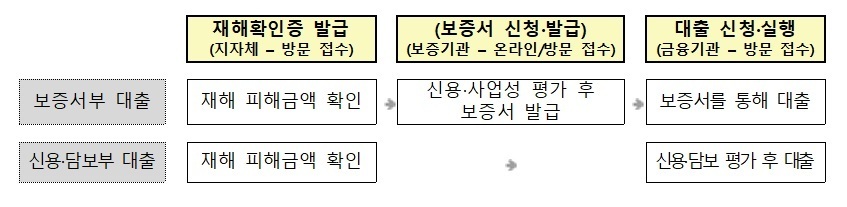 지원대상 : 재해 및 재난으로 지자체에서 재해확인증을 발급받은 소상공인