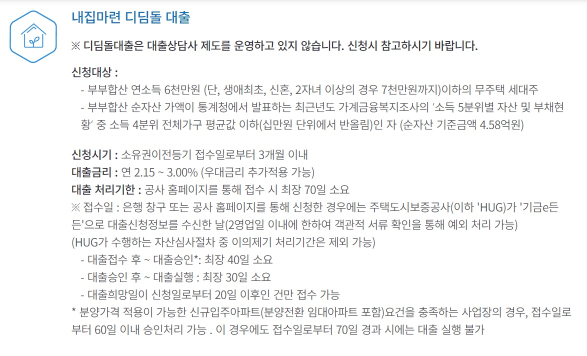 대출한도 : 2.5억원(신혼 2.7억원, 2자녀 이상 3.1억원)