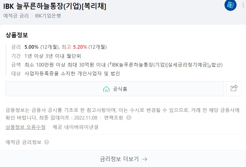 IBK기업은행 - IBK 늘푸른하늘통장(기업, 복리채)